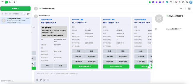 建設業のDXを推進するAnymore株式会社(本社:東京都渋谷区)は、2025年2月より、従来から提供してきたLINE連携機能をさらに強化し、LINE WORKS連携機能の提供を開始しました。