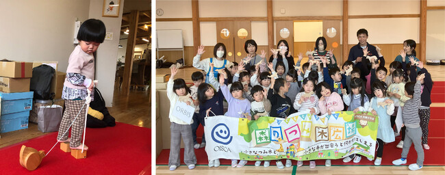 また同年10月からはこれからの未来を担う子どもたちへの寄付支援を主軸とする、サステナビリティ戦略を加速させています。(https://prtimes.jp/main/html/rd/p/000000621.000002061.html) 能登半島地震から1年が経過した現在も、被災地は復興の半ばで厳しい冬を迎えており、引き続き被災地に支援活動が求められています。今回、現地の子どもたちへの心のケアと健やかな成長への支援として、楽しい時間を過ごしてもらうこと目的に、2002年よりオルビスの環境保全活動に一緒に取り組むパートナーであるオイスカが推進する、「能登半島おもちゃ広場・つみ木広場」の取り組みにおいて、寄付金額100万円を寄付しました。その寄付金を通じて、外遊びが困難となる本格的な冬を迎える前に、室内においても子どもたちが自然に触れて楽しめるように、珠洲市役所を通してつばき保育園および子ども達が集まる場として運営されているキッズランドへ木製玩具を寄贈し、同園でつみ木広場を開催、珠洲市から二次避難をされている方を対象におもちゃ広場を開催しました。