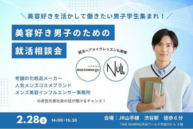 【2月28日@渋谷】「美容好き男子のための就活相談会」を開催!美容好きを活かして働く男性社員が登壇。就活ヘアメイクレッスンも。