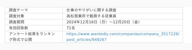 高松営業所におけるスキルの向上と仕事のやりがいに関する実態を公開