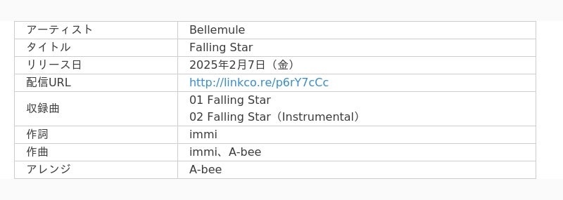 電音部シンオオクボエリアの「Bellemule」(ベルミュール、プロデュース:株式会社HIKE)は、本日2月7日(金)に7thシングル『Falling Star』をリリースしました。同曲はBellemuleの2ndミニアルバム『Sparkle』(2025年3月5日リリース予定)にも収録されています。