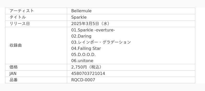 Bellemule 2ndミニアルバム『Sparkle』概要