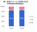 邦楽・洋楽・K-POPを含むアジアのジャンル別動向*3をみると、邦楽は前年と比較して1%上昇し引き続き大きなシェアを占めた。洋楽のシェアは前年比で横ばい、アジアは前年より1%ポイント縮小となった。再回数構成比では邦楽が82%、洋楽が6%、アジアは12%と邦楽が多くを占める結果となった(図2)。 年間再生回数の上位100タイトルをみると、邦楽が3タイトル増え93タイトル、洋楽は1タイトル、アジアは前年より4タイトル減の6タイトルとなった。