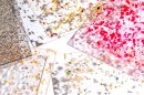 オリジナルアクリル板は、2024年5月に行われた樟葉駅前広場の供用開始セレモニーで使用されたテープキャノン砲の銀テープを封入して制作したもので、円形に切り出して2024年度のクリスマス装飾にてツリー用のオーナメントとして使用していました。そのオーナメントをクリスマス終了後に回収し、今回のワークショップでも使用いたします。また長方形のアクリル板から円形に切り出しを行う際に残ってしまった端材の部分もワークショップの材料として使用することで、おまつり委員会がミッションとして掲げる“サステナブルな社会を目指す”ことにも寄与いたします。
