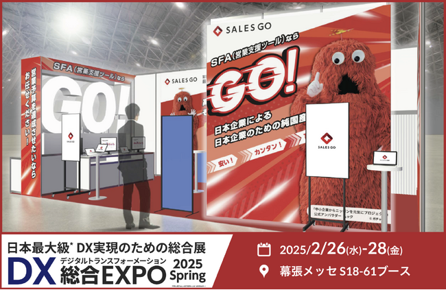 SFAとインサイドセールスで営業のデジタル化と売上アップを支援するSALES GO株式会社(所在地:東京都品川区、代表取締役社長:内山 雄輝、以下SALES GO)は、2025年2月26日(水)~28日(金)、幕張メッセで開催される『DX総合EXPO』に出展いたします。ブースでは、最新のマーケ・営業支援ツールやノウハウ、お客様事例を多数ご紹介いたします。