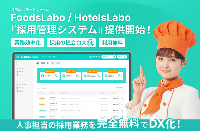 飲食・宿泊業界特化の「採用DXプラットフォームFoodsLabo・HotelsLabo」に無料で使える新サービス『採用管理システム』が登場!