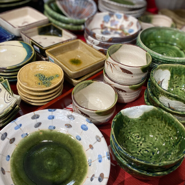 美濃焼、瀬戸焼、九谷焼など人気産地のやきものがそろうほか、現品処分市など掘り出し物ももりだくさん!さらに作家ものから、おしゃれでリーズナブルな普段使いの器までを幅広く取りそろえて。
