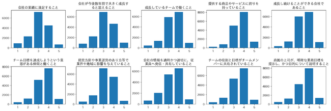 図1.調査企業1,100社の各質問項目に対する従業員満足度ヒストグラム