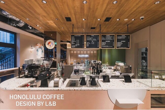 ホノルルコーヒージャパン株式会社(代表取締役社長兼CEO 萩原 利貴)が2024年12月5日原宿にオープンした、「ホノルルコーヒー」の日本第1号店の設計デザインを、株式会社L&B(代表取締役社長 七種 珠水)が手がけた。