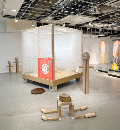 ソノ アイダ#TOKYO MIDTOWN AWARD 第6期成果展にて 「さとうくみ子氏の新作『こねまわし』」の作品素材に日本化工機材の「角紙管」が使用されました。