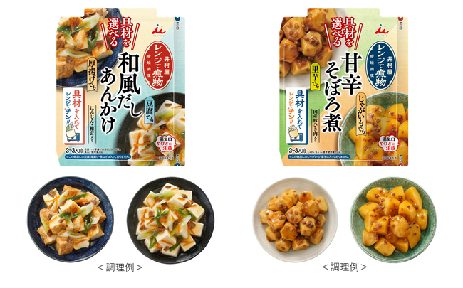 井村屋株式会社(本社:三重県津市高茶屋七丁目1番1号、社長:岩本 康)は、電子レンジで簡単に副菜が作れるパウチ入りの調味料「レンジで煮物」シリーズの新商品として、『具材を選べる レンジで煮物 和風だしあんかけ』『具材を選べる レンジで煮物 甘辛そぼろ煮』の2商品を、2025年2月17日(月)より全国にて順次発売します。