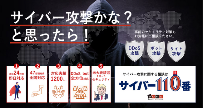 株式会社ドーモ(東京都中央区築地、代表取締役 占部雅一)は、Webサイトへのサイバー攻撃によるダウンや個人情報漏洩などの被害を受けた企業を支援するため、迅速に復旧を支援する「Webサイト攻撃救急レスキューサービス『サイバー110番』」の提供を開始しました。