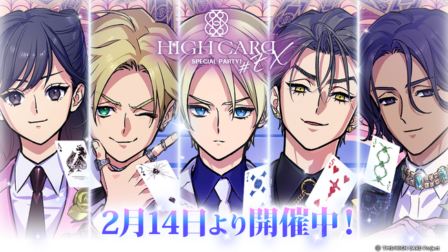 アニメ『HIGH CARD』スマートフォン向けパズルゲーム「HIGH CARD -Color of the Pair-」より、「#EX SPECIAL PARTY!」コラボガチャが2月14日より実施!