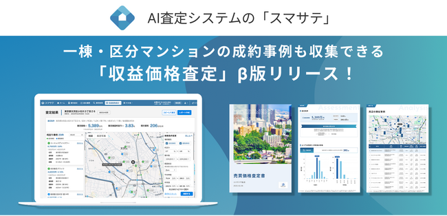 AI賃料査定システムを提供するスマサテ株式会社は、不動産売買の査定をより効率的に行うための新サービス『スマサテ_収益価格査定 β版』を無料公開いたします。