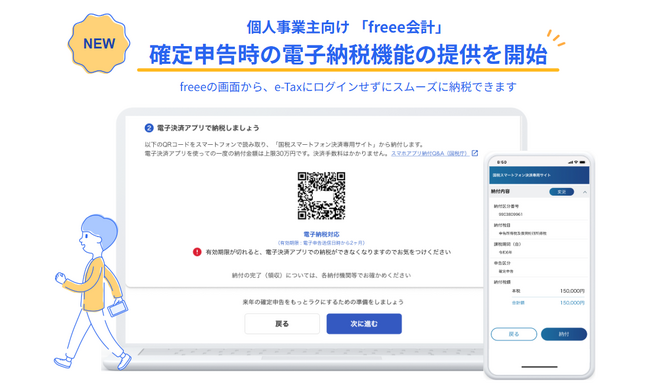 フリー株式会社(本社:東京都品川区、CEO:佐々木大輔、以下「freee」)は、freee会計で確定申告する際に電子納税ができる機能の提供を開始したことをお知らせします。