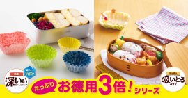 弊社おべんとうカップをご愛用いただく方のお声から、大容量タイプへのご意見を多くいただいていました。さらに調査を実施し、お弁当作りの頻度が高い方にとって、使用するおかずカップの数も多くなるため、「お徳用」商品のニーズが高い事が確認できました。今回、人気のお弁当カップに「お徳用」としてさらに3アイテムを追加発売いたします。