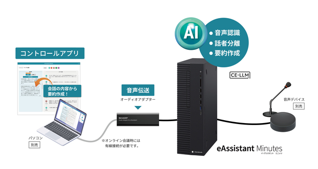 シャープは、独自のエッジAI技術を活用した議事録作成支援ソリューション「eAssistant Minutes(イーアシスタント ミニッツ)」を本年3月中旬に法人向けに発売します。