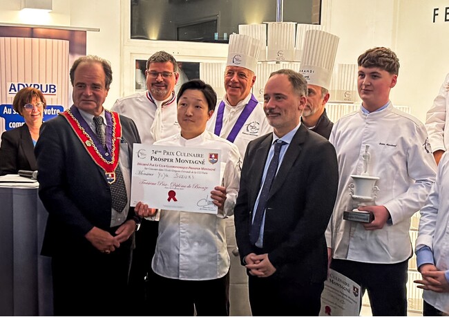 このコンクールは「フランス料理界の“ゴンクール賞”(=フランス文学最高峰であり、ノーベル文学賞や芥川賞と並ぶ世界の8大文学賞のひとつ)」と称され、フランス大統領府が後援する唯一の料理コンクールです。2023年11月に日本で開催された「メートル・キュイジニエ・ド・フランス“ジャン・シリンジャー杯”」で優勝を果たした鈴木が出場権を獲得した本コンクールでは、5つ星ホテルやミシュラン星付きレストランなどで活躍する地元フランスの一流料理人たちと腕を競い合い、鈴木が見事3位入賞の栄誉に輝きました。
