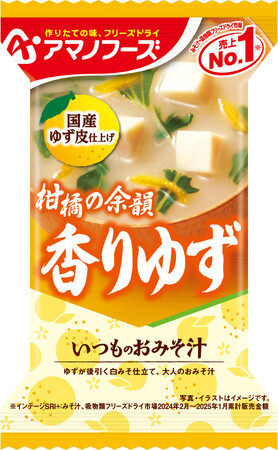 ・「香りゆず」は、国産のゆず皮を使用した爽やかなゆずの香りが楽しめる白みそ仕立ておみそ汁です。具材は豆腐と水菜、ゆず皮で、柑橘の爽やかな香りが余韻で楽しめる大人向けの味わいです