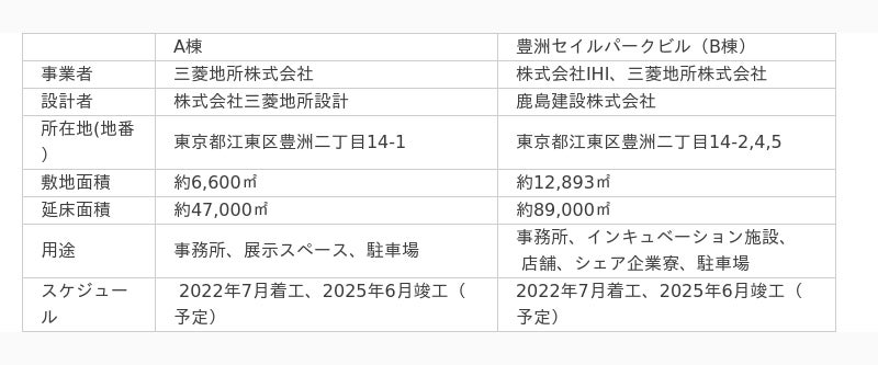 IHIおよび三菱地所は、地域の賑わい拠点として、豊洲エリアに新たな魅力を創出することで、エリア全体の価値向上に資する場となるよう、引き続き計画を推進してまいります。