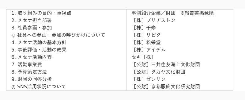 【2024年度メセナ活動実態調査報告書 『Mecenat Report 2024』 主な掲載内容】