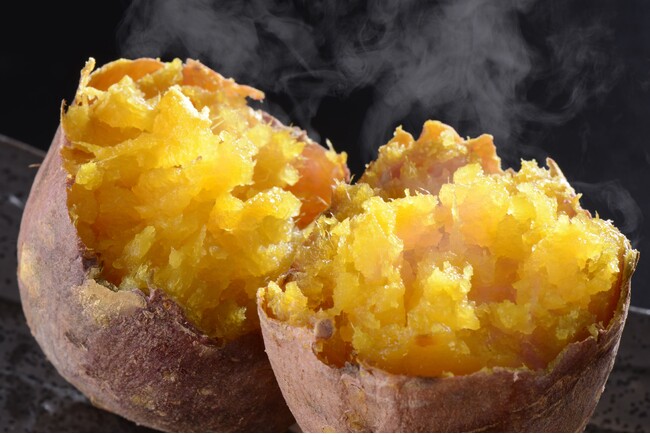 品種は安納芋で、ねっとりとした濃厚な甘みが特徴です。収穫後は、温度・湿度を管理している暗室で約40日かけて熟成させ、蓄えたデンプン質を糖質(甘み)に変化させることで、砂糖不使用にもかかわらず濃厚な甘みをお楽しみいただけます。
