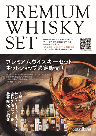 ネットショップ限定企画!サントリーウイスキーと組み合わせたプレミアムウイスキーセット6種類を3月3日(月)~順次販売いたします。シングルモルト山崎12年&ザ・マッカラン ダブルカスクのセットや白州12年&ザ・マッカラン レアカスクのセット、山崎Story of the Distillery&バランタイン21年のセットなどご用意。商品詳細、価格、販売時間等についてはクイーンズ伊勢丹公式アプリでお知らせいたします。数量限定、先着順となります。まずは3月2日(日)までにクイーンズ伊勢丹公式アプリをインストールいただき、会員登録してお待ちください。
