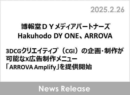 博報堂DYメディアパートナーズ、Hakuhodo DY ONE、ARROVA、3DCGクリエイティブ(CGI)の企画・制作が可能なX広告制作メニュー「ARROVA Amplify」を提供開始