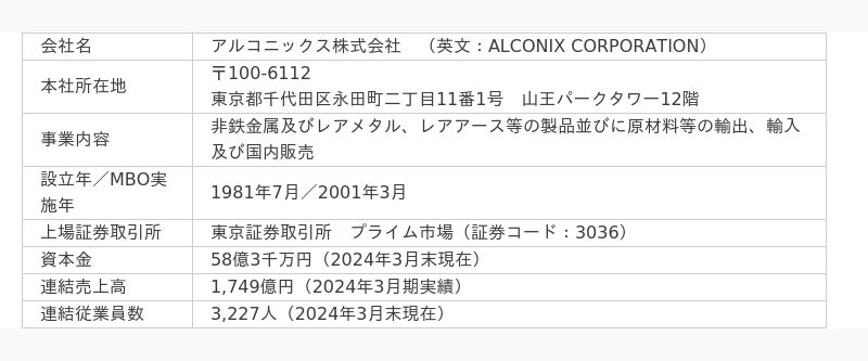 「アルコニックス株式会社」のプレスリリース