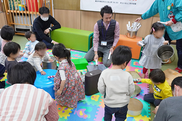 横浜市で総合ポピュラー音楽教室を運営する株式会社アダチ音研は、2025年2月24日(月・祝)、横浜市南区にある「つどいの広場 えの木」にて、「何でも太鼓でリズム遊び & ギターに合わせて一緒に歌おう」と題して、お子さまと保護者様に向けたイベントを開催しました。