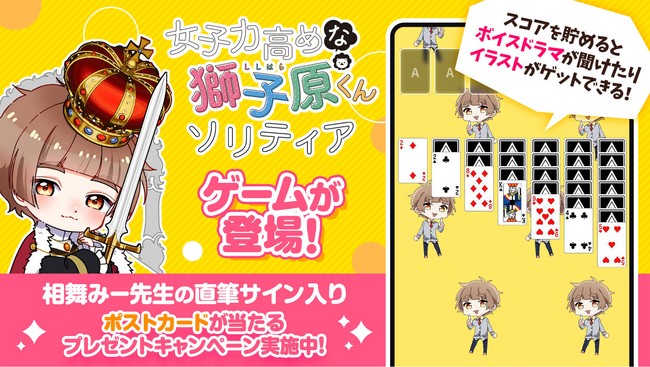 IPプラットフォーム事業を手がけるコミスマ株式会社(本社:東京都千代田区、代表取締役社長CEO:佐藤 光紀、以下「コミスマ」)は、Moji株式会社(本社:東京都渋谷区、代表取締役:鎌野 里樹)が制作を手掛けたスマートフォン向けトランプカードゲーム「女子力高めな獅子原くんのソリティア」を、本日2月28日(金)より配信開始いたします。