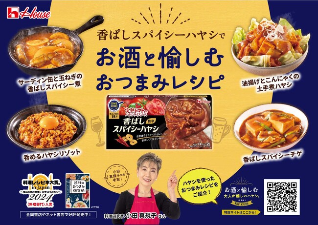 ハウス食品株式会社は、2025年2月10日(月)発売の大人が満足できる「完熟トマトのハヤシライスソース」<香ばしスパイシーハヤシ>の香ばしくて奥深い味わいを活かした、お酒と一緒に楽しめるおつまみアレンジレシピを特設サイトで公開しております。今回、そのプロモーションの一環として、「第11回 料理レシピ本大賞 in Japan」の<料理部門>で入賞した『23時のおつまみ研究所(ポプラ社)』著者 小田真規子氏とのコラボレーション企画を、3月1日以降順次実施いたします。