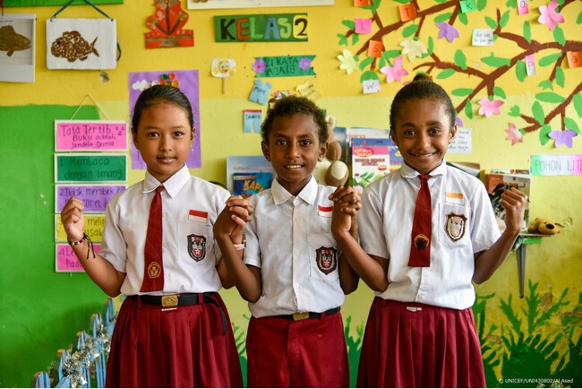 日本政府、インドネシア・パプア州の子どもたちの栄養と学習の促進のため、UNICEFを通じて5億600万円の無償資金協力を実施