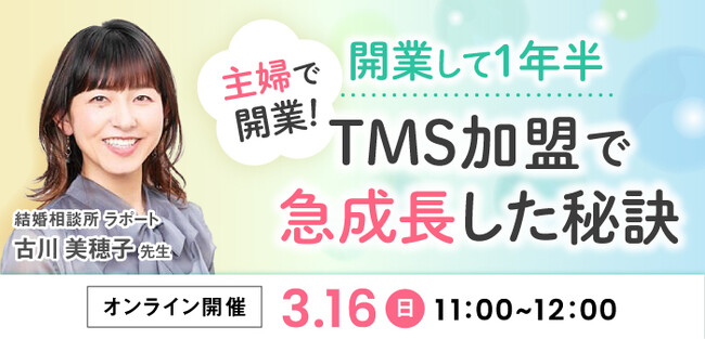 【2025年3月16日開催】結婚相談所開業・副業を検討の方向けオンラインセミナー【開業して1年半!TMS加盟で急成長した秘訣】主婦の独立開業・副業