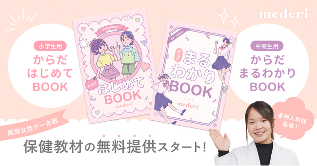 オンラインピル診療サービス『mederi Pill(メデリピル)』を提供するmederi株式会社(本社:東京都目黒区、代表取締役 坂梨 亜里咲 以下、mederi)は、3月8日の国際女性デーに合わせて、産婦人科医が監修した保健教材 小学生用「からだ はじめてBOOK」、中高生用「からだ まるわかりBOOK」を2025年3月3日(月)より無料提供を開始します。
