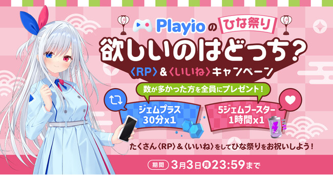 【Playioのひな祭り】みんなでお祝い!ゲームプラットフォームアプリ「Playio(プレイオ)」3月3日に公式Xいいね&リポストキャンペーンを開催!