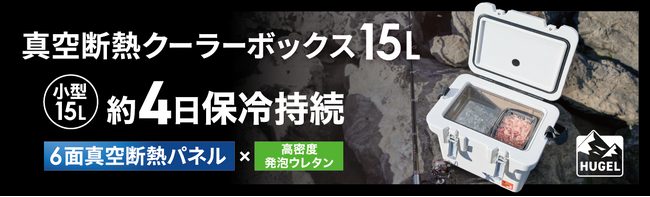 最大保冷日数4日(※1)!夏場のソロキャンプ・釣り需要に対応 「HUGEL 真空断熱クーラーボックス15L」発売