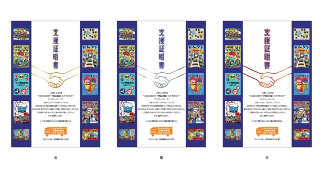 (ご支援いただいた金額に合わせて証明書の色が変わります)