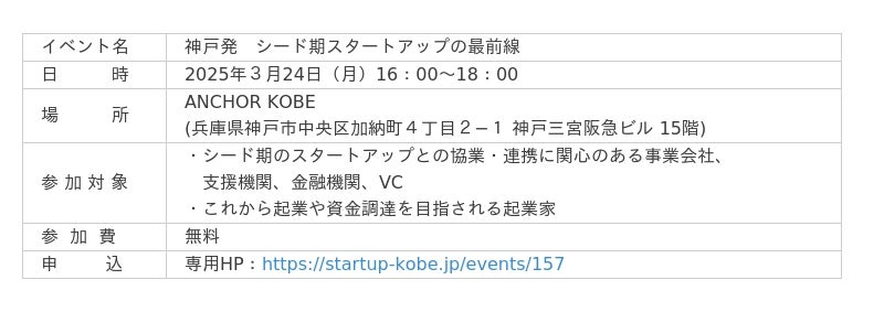 ミートアップイベント「神戸発、シード期スタートアップ最前線」の開催について