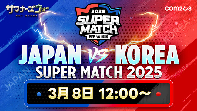 スマートフォン向けモバイルゲームをサービスしている株式会社Com2uS Japanは、iOS/Android/Steamで大好評配信中の本格RPG『サマナーズウォー: Sky Arena』(以下、サマナーズウォー)にて、3月8日12時から表参道ヒルズ・スペース オーにて日韓ライバル戦「JAPAN vs KOREA SUPER MATCH 2025」を開催することをお知らせします。