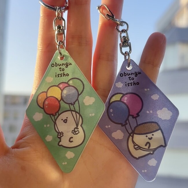 レンチキュラーキーホルダー 全8種:各891円(税込)お文具ひろば限定アートの風船をもったお文具さんたちがユラユラうごく?!