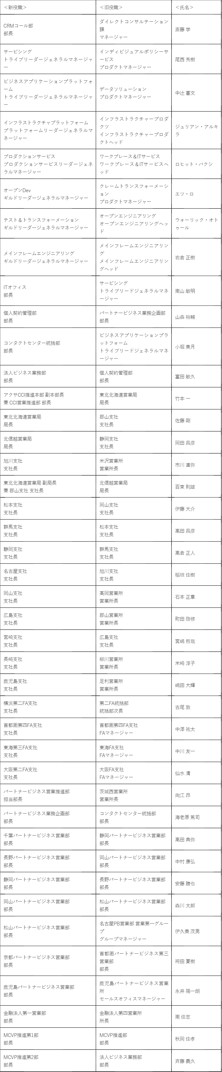 アクサ生命の役員および部長・支社長人事について