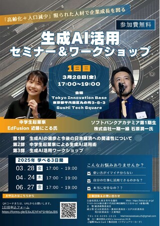 【参加費無料!3月28日(金)17:00-】Tokyo Innovation Baseで開催!中学生起業家×トップビジネスリーダーが登壇「生成AI活用セミナー&ワークショップ」第1回目のご案内