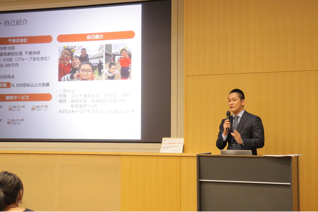 写真と食の力で子どもの幸せを創ることを目指す総合保育テックサービス「はいチーズ!」を提供する千株式会社(本社:東京都千代田区、代表取締役社長 千葉伸明、以下 当社)は、長年の幼児教育の知見をもとに保育プログラムや研修サービスの提供を通じて教育業界を支援する株式会社アイ・エス・シー(東京都千代田区、代表取締役 山本直美)と共同し、一般社団法人川口市保育連盟(埼玉県川口市、会長 仲島大勝)主催の研修にて「保育士の業務負担軽減と離職防止研修」を行いました。本研修では、事前に会員園の皆さまにご協力いただいたアンケート調査結果をもとに、当社の江川が業務負担の傾向と対策について解説しました。さらに、株式会社アイ・エス・シーの吉村様によるワークショップでは、保育現場における理想的な役割分担を可視化し、参加者主体で課題解決に向けた議論が交わされました。本研修を通じて、川口市の保育施設の施設長やリーダー職員の皆さんは日々の保育業務を可視化することの重要性を再認識し、保育の質向上に向けた具体的な取り組みへの足がかりを掴むことができました。