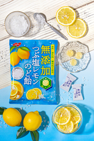 春夏新定番の、無添加(※香料・着色料・酸味料 不使用)の塩レモン味を楽しめつつ塩分補給もできる!「無添加つぶ塩レモンのど飴」