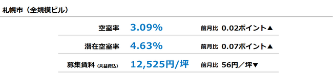 [札幌版]【最新オフィスマーケットレポート発表】オフィス空室率 前月からほぼ横ばい
