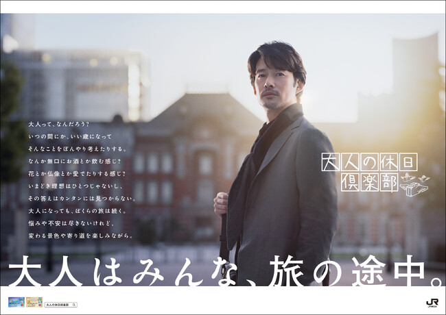 ○50歳からの旅と暮らしを応援する、JR東日本の会員向けサービス「大人の休日倶楽部」では、この春より新たなシリーズ広告をスタートします。俳優の竹野内 豊さんをメインキャストに、『大人はみんな、旅の途中。』をキャッチコピーとする広告を展開していきます。