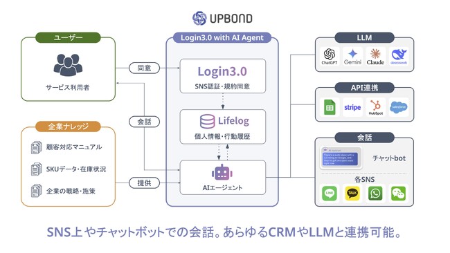 株式会社UPBOND(本社:東京都、代表取締役:水岡 駿)は、ユーザーのライフログ(行動履歴・興味関心データ)を活用することで、よりパーソナライズされたAIエージェント「Login3.0 with AI Agent」を発表しました。