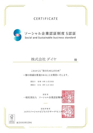 今年創業79周年の株式会社ダイヤ(本社:大阪市生野区新今里/代表取締役社長:多田俊介/以下ダイヤ)は、地域に根差したベーカリーとして地元の中学校や高校、専門学校、大学などへの職業体験や出前授業の次世代キャリア教育を高く評価され、社会課題の解決を目指す企業を評価する「ソーシャル企業認証制度 S認証」を取得しました。