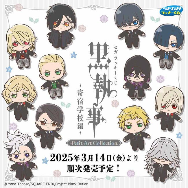 株式会社セガ フェイブは、2025年3月14日(金)よりセガ ラッキーくじ「黒執事 -寄宿学校編- Petit Art Collection」を、ミニストップ、イトーヨーカドー、各種ホビーショップ等にて順次発売いたします。